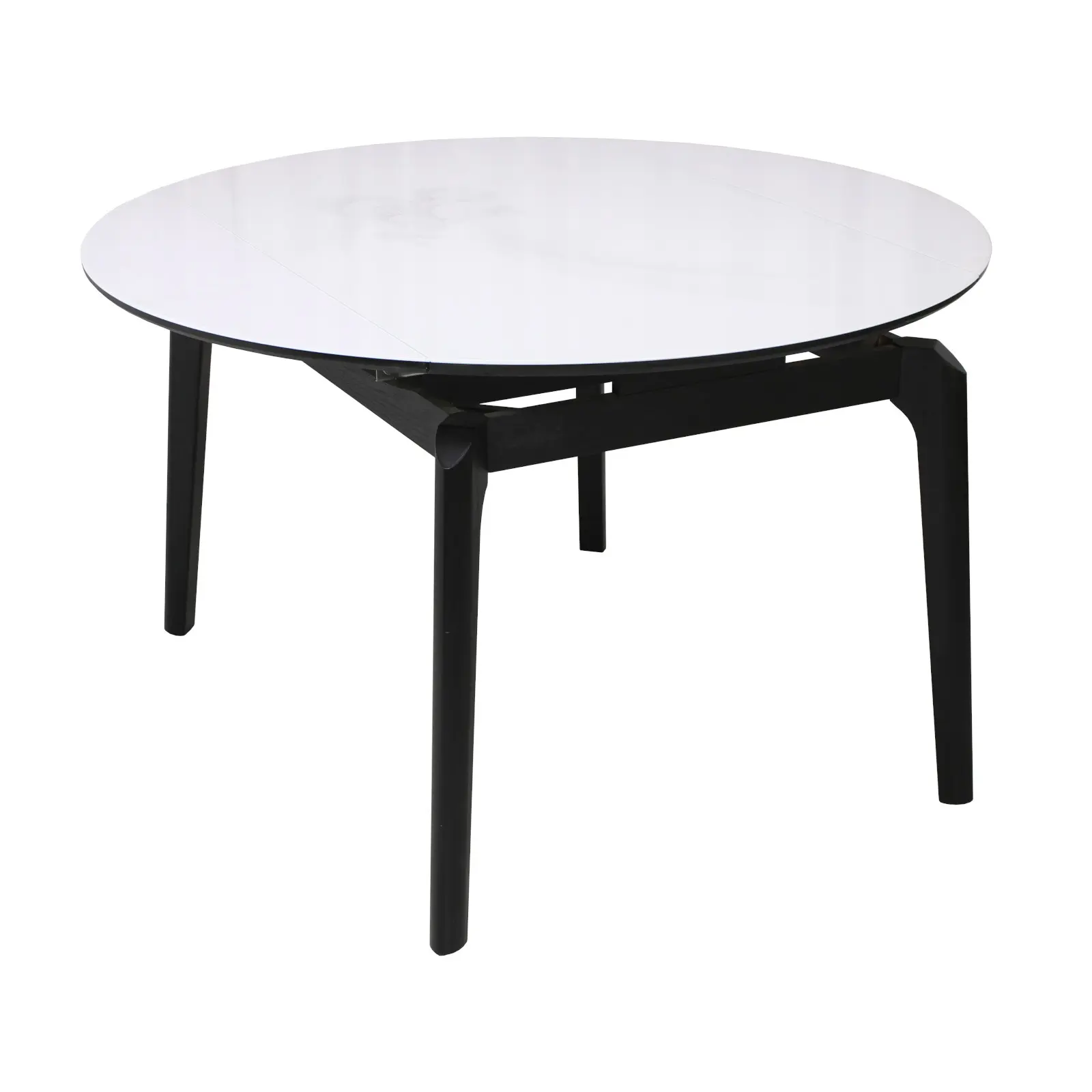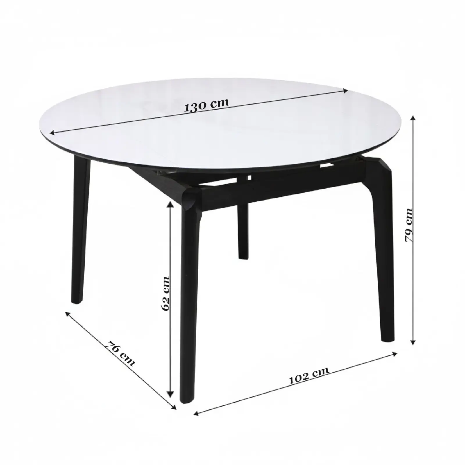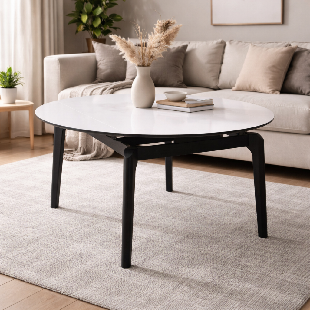 Masă Rotundă Extensibilă Arhus Negru impresionează prin designul modern și elegant, fiind ideală pentru bucătărie sau living. Blatul din lemn acoperit cu sticlă securizată oferă o suprafață lucioasă, rezistentă la zgârieturi și pete, ușor de întreținut. Picioarele din lemn asigură stabilitate, iar stilul scandinav se integrează perfect în orice decor contemporan.