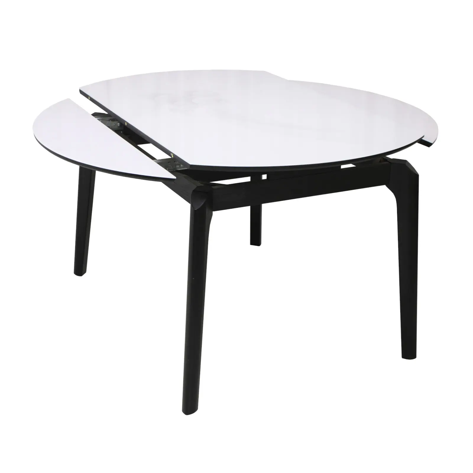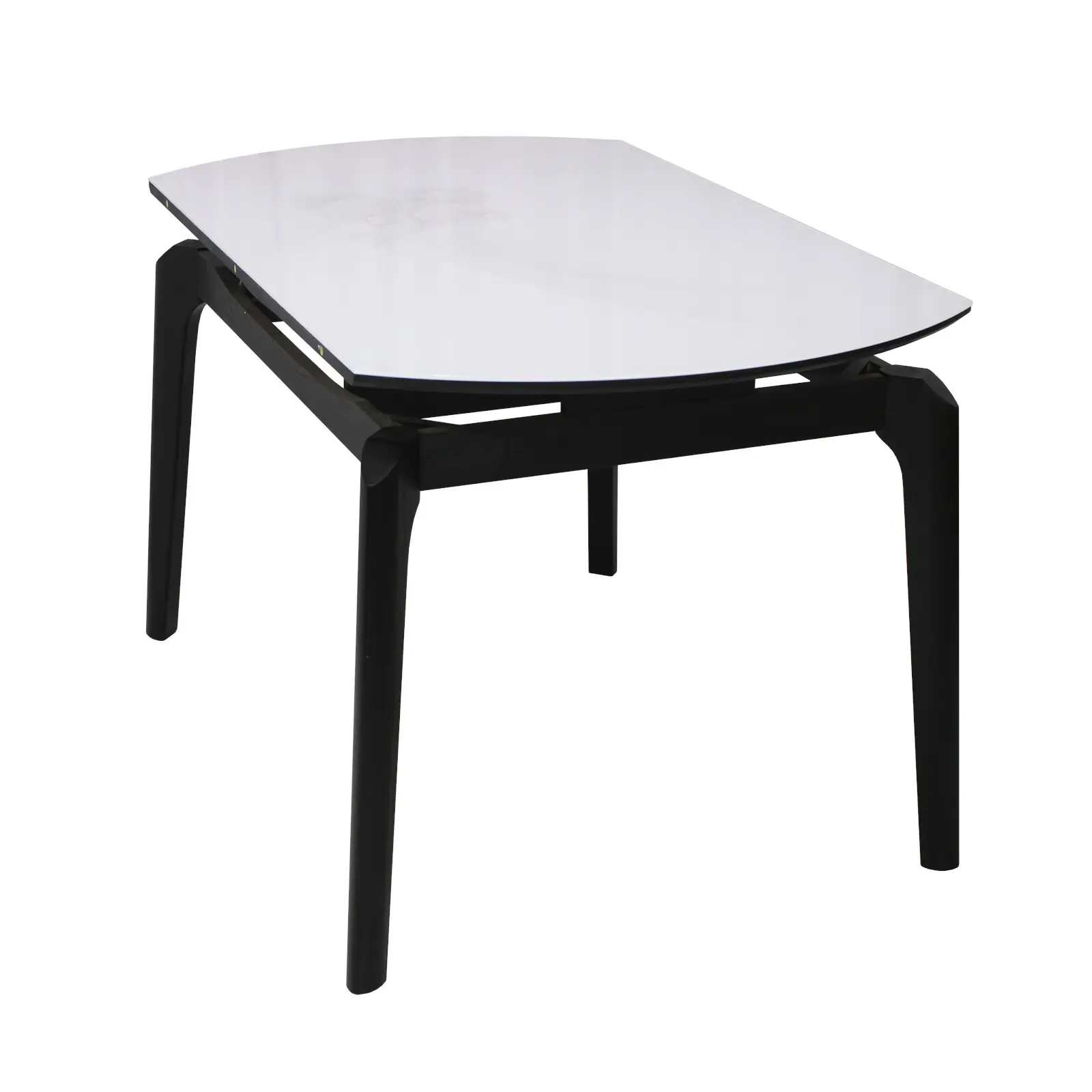 Blatul este realizat din lemn și este acoperit cu sticlă securizată, oferind un aspect lucios și rafinat. Suprafața este rezistentă la zgârieturi și pete, fiind potrivită pentru utilizarea zilnică și ușor de curățat. Datorită sistemului extensibil, masa poate fi adaptată în funcție de necesități, fiind ideală atât pentru utilizarea zilnică, cât și pentru momentele în care aveți musafiri.