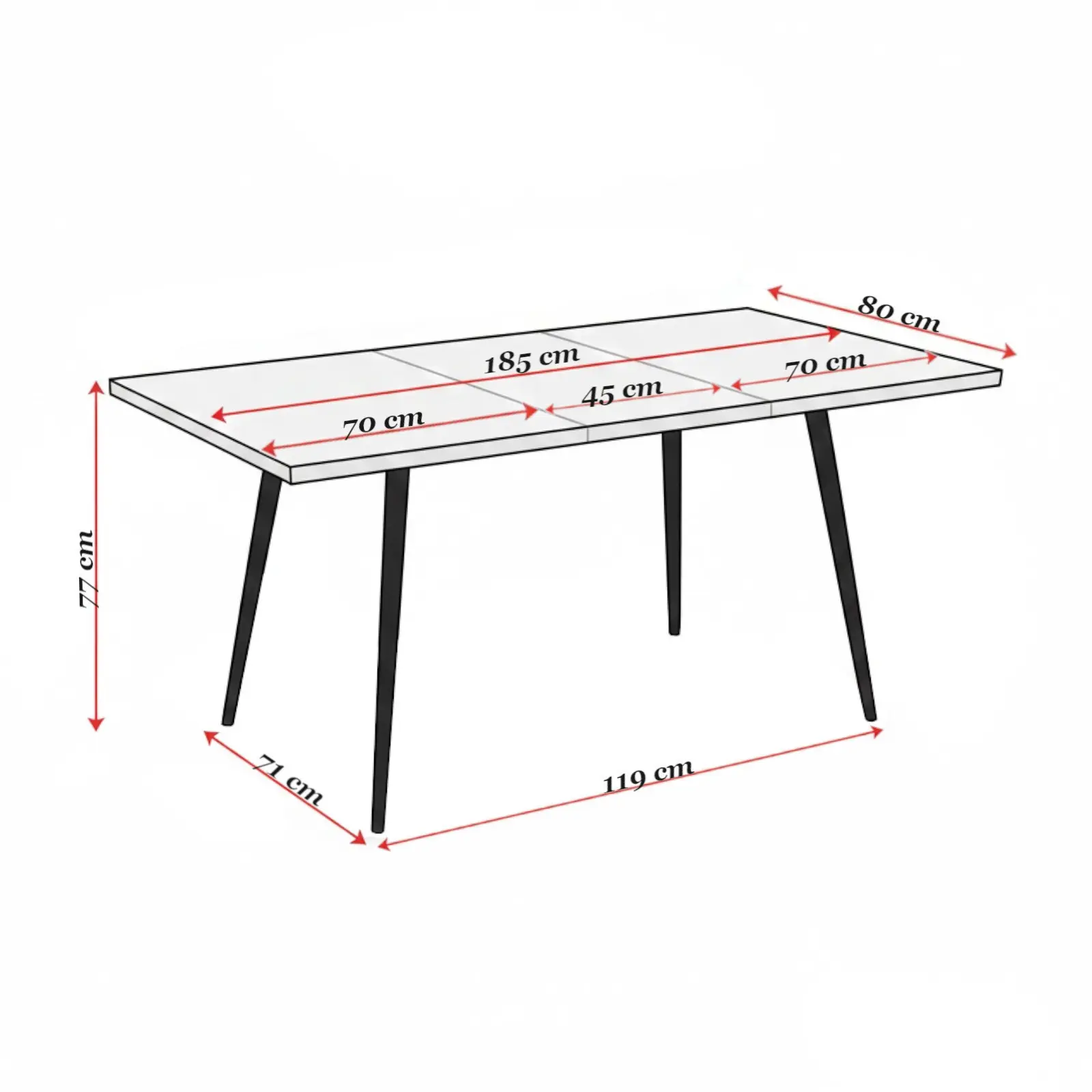 Cu o lungime de 140 cm în varianta pliată și 185 cm în varianta extinsă, masa oferă suficient spațiu pentru 6–8 persoane. Este soluția ideală pentru mesele zilnice în familie, dar și pentru întâlnirile cu prietenii sau ocaziile speciale. Mecanismul de extindere este practic și ușor de utilizat.