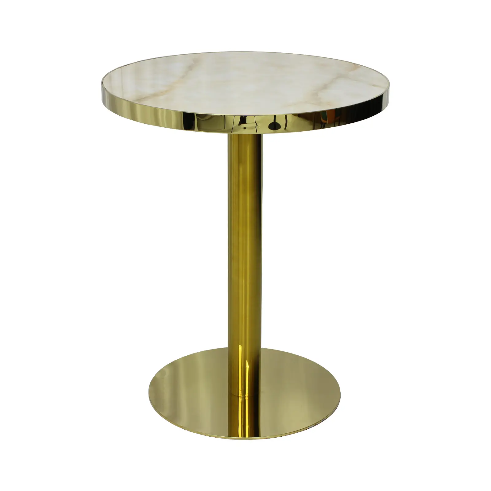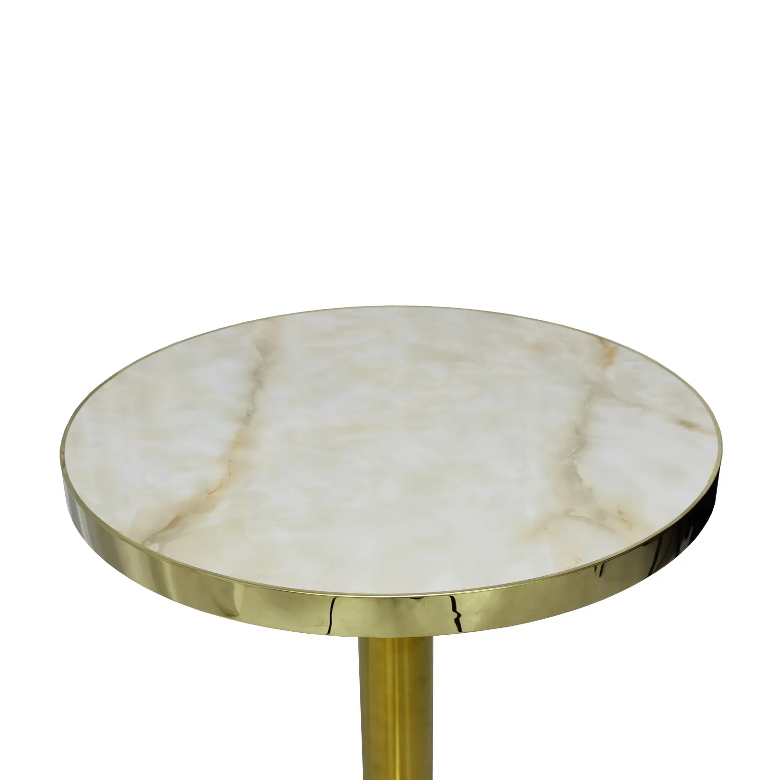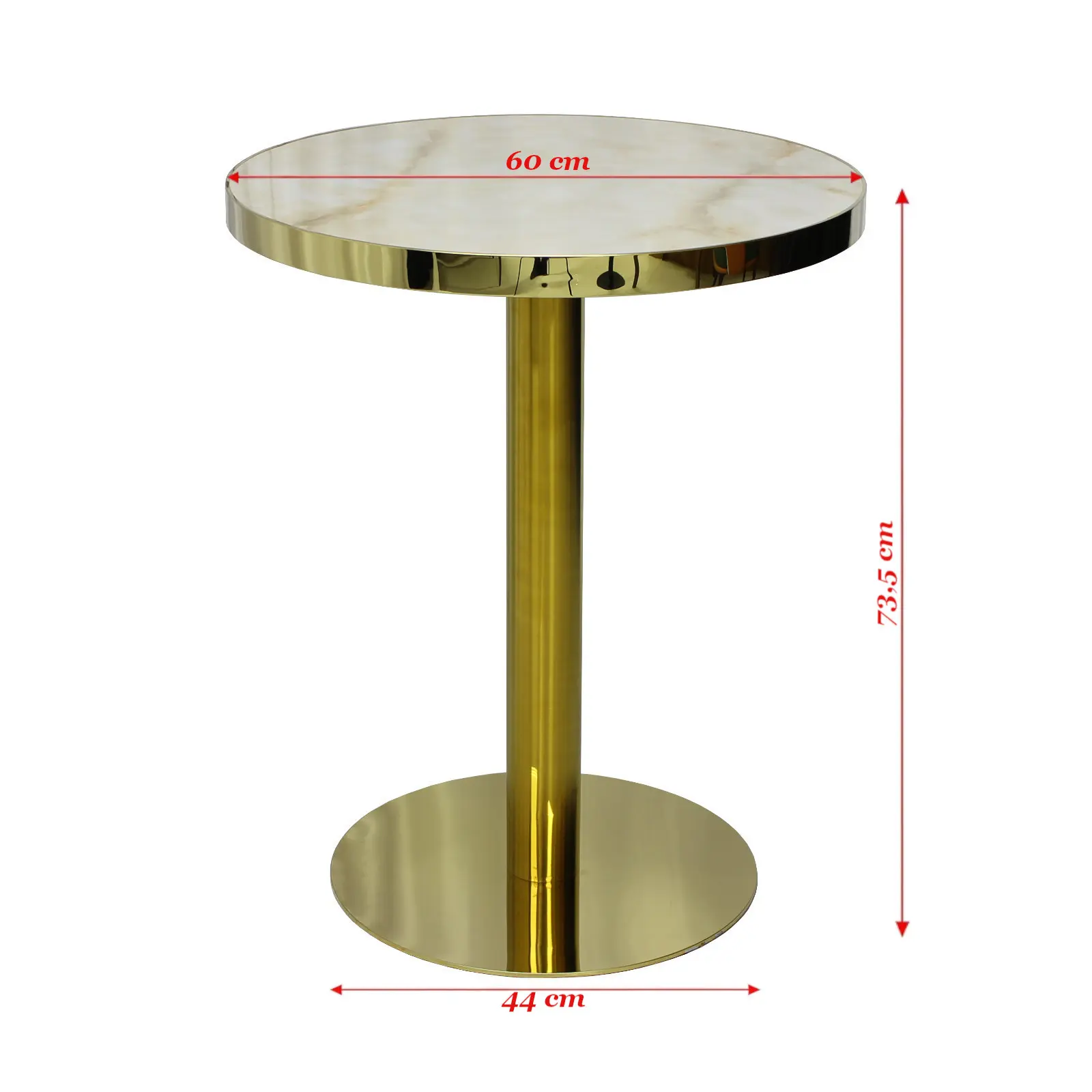 Masa Orion Rotunda Picior Auriu este o masă modernă și elegantă, cu blat din MDF și picior auriu, ideală pentru bucătărie sau living. Diametru 60 cm, înălțime 73,5 cm. Perfectă lângă canapea sau în spațiile principale ale locuinței.