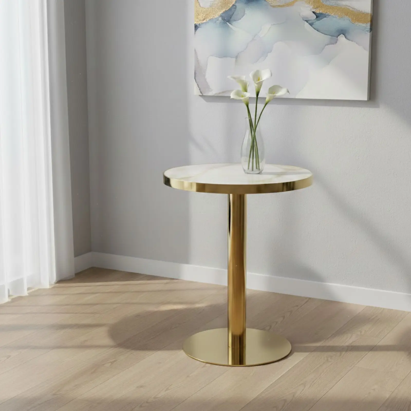 Produsul include blat și picior masă, fiind gata de utilizare imediat. Este alegerea perfectă pentru cei care își doresc o combinație între design modern și eleganță aurie în locuință.