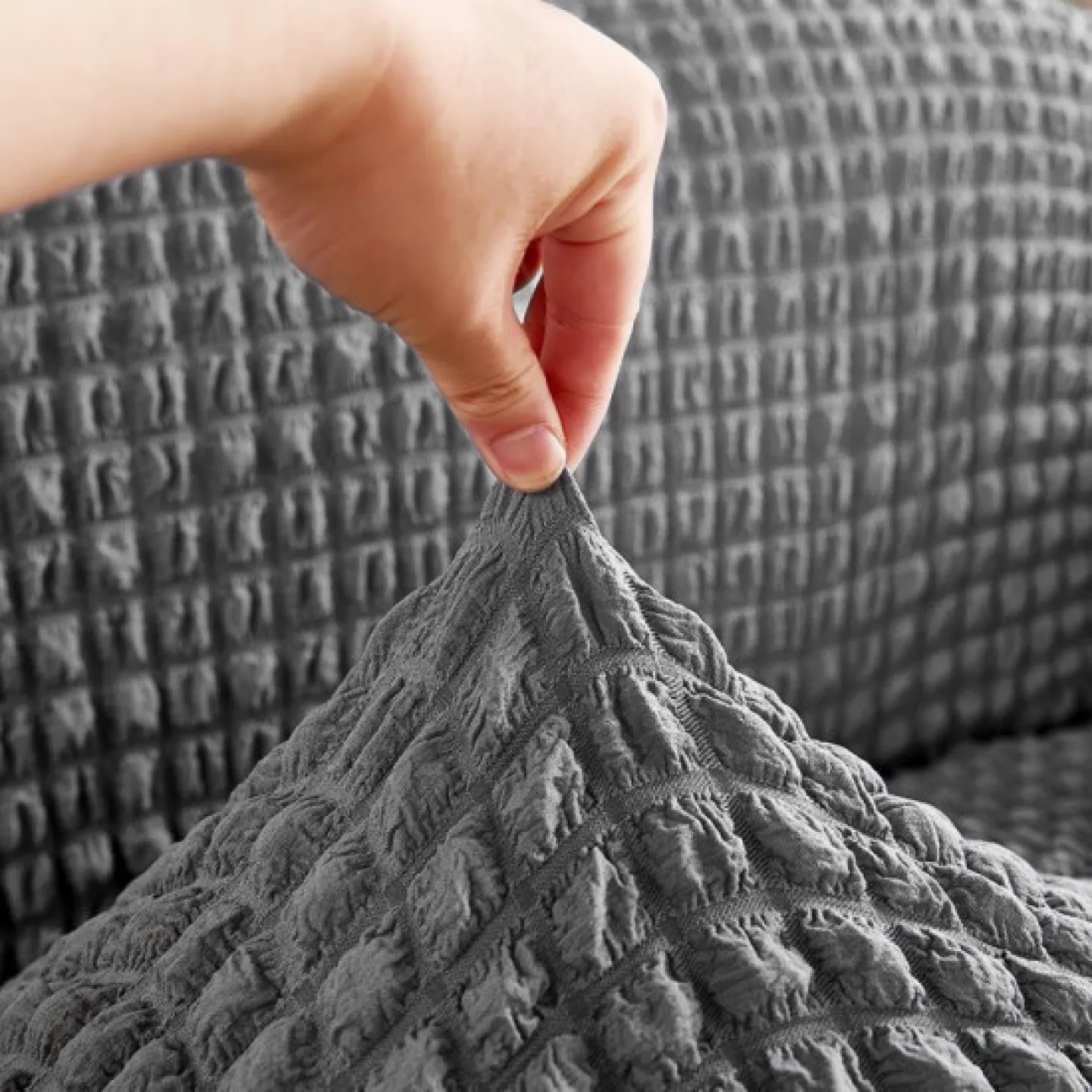 Materialul creponat elastic permite o potrivire ușoară pe majoritatea tipurilor de scaune, oferind în același timp protecție împotriva petelor, uzurii și murdăriei. Husele sunt ușor de montat și de întreținut, putând fi spălate la mașină fără a-și pierde forma sau culoarea.